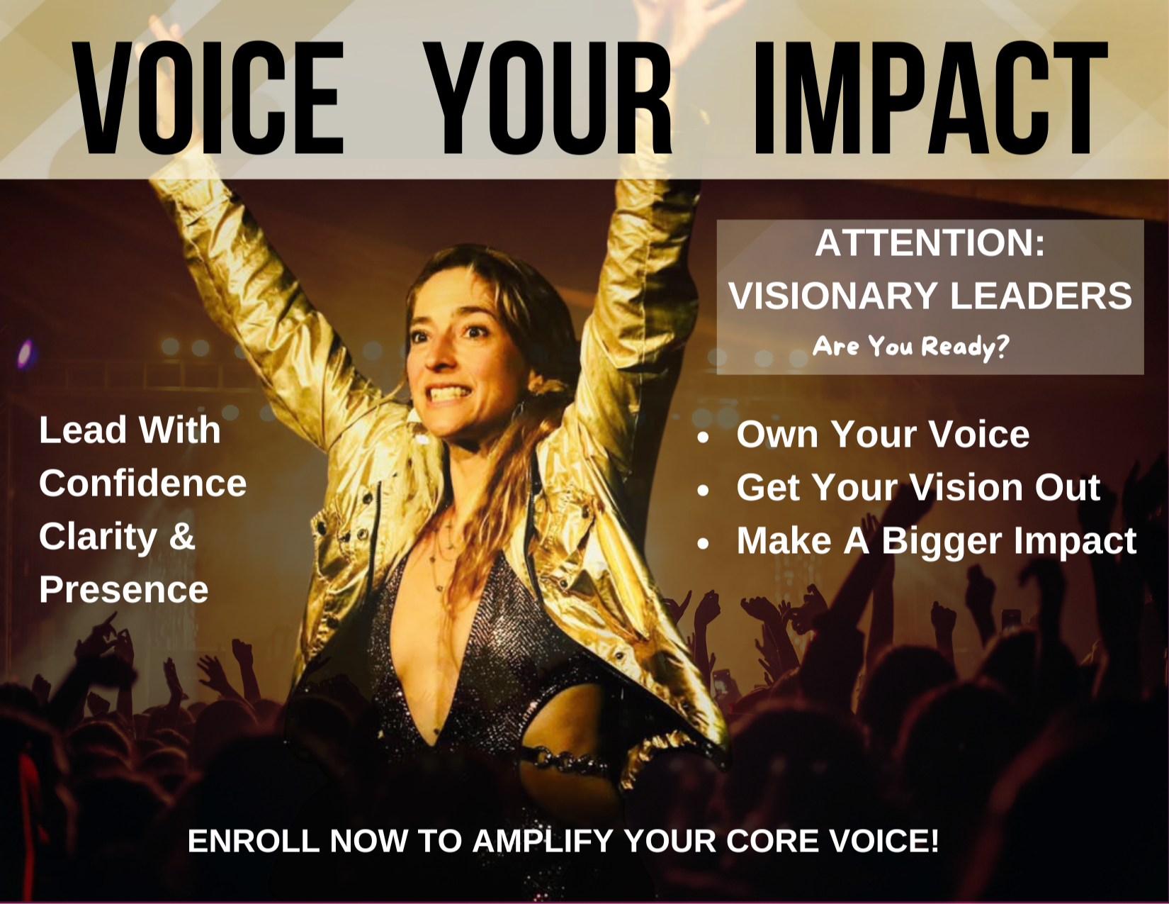 An 10-week coaching container and training for visionary leaders ready to own your voice, master your presence, and lead with confidence and clarity.